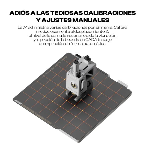 - Calibración completamente automática: Realiza calibraciones automáticas del desplazamiento Z, nivelación de cama y resonancias sin intervención manual antes de cada impresión.