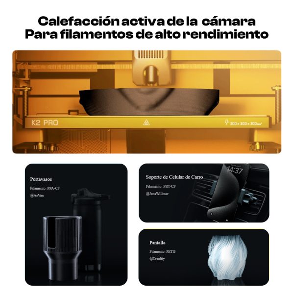 • Cámara de impresión activamente calefactada: permite impresiones con materiales exigentes como ABS y PPA-CF.