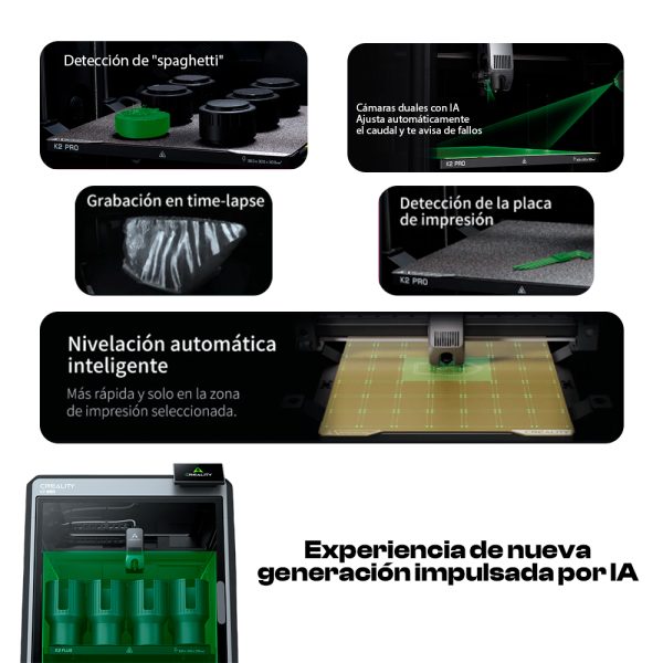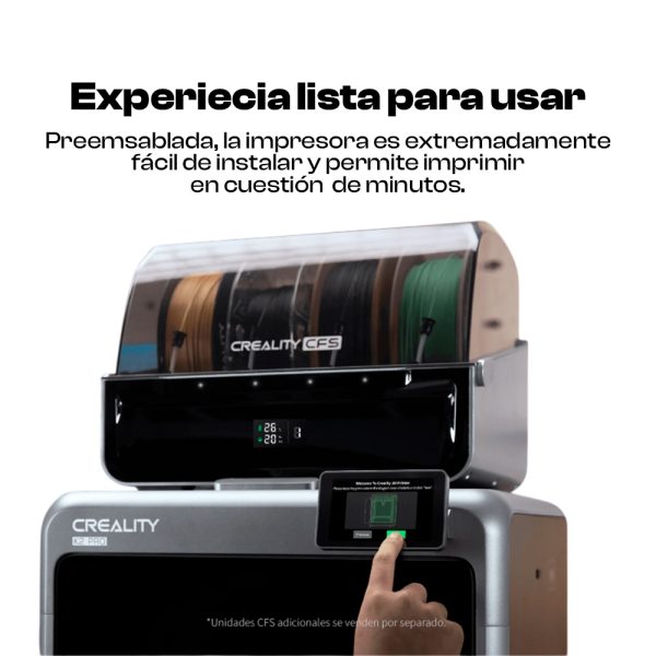 • Impresión multicolor avanzada: el paquete Combo incluye el módulo Creality CFS (Color Filament System) para permitir hasta 16 colores/materiales (hasta 4 módulos CFS instalados).