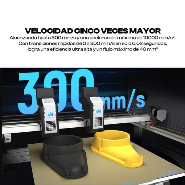 - Velocidad de impresión: recomendada ~200-300 mm/s; puede alcanzar hasta ~300 mm/s (algunos datos indican hasta 500 mm/s)