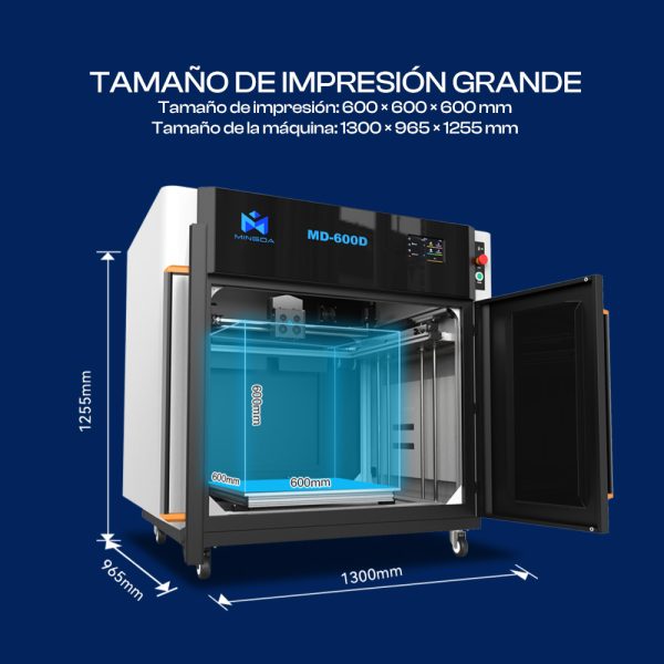 - Volumen de impresión: 600 × 600 × 600 mm