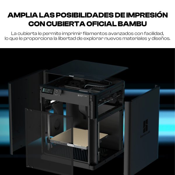• Impresión multicolor y multimaterial — Incluye el sistema AMS (Automatic Material System) que permite imprimir con múltiples colores o materiales en una sola pieza (hasta 4 colores con un módulo, expandible hasta 16).