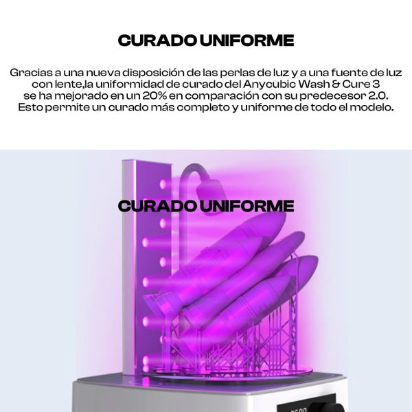 Tiene un tamaño de curado incrementado en un 15 % respecto a modelos anteriores, permitiendo procesar objetos más grandes o en mayor cantidad en una sola sesión.