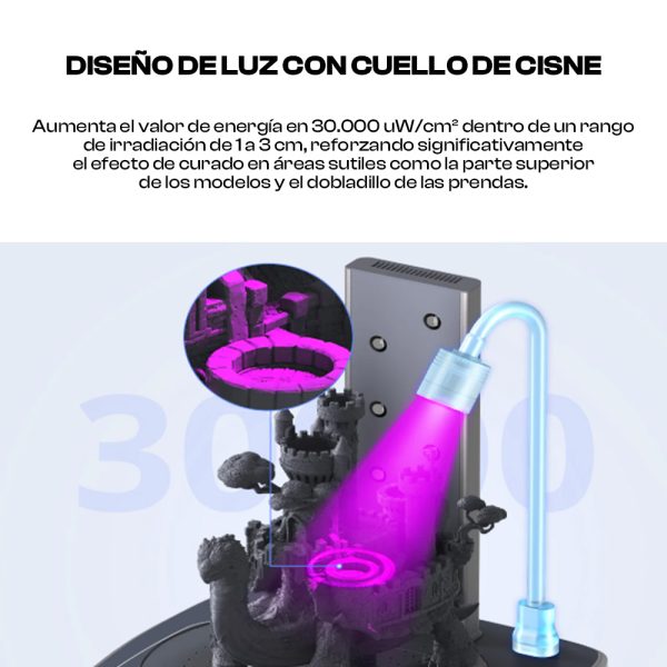 • Configuración de luz UV: 10 unidades de LED de 405 nm más luz flexible tipo cuello de cisne.